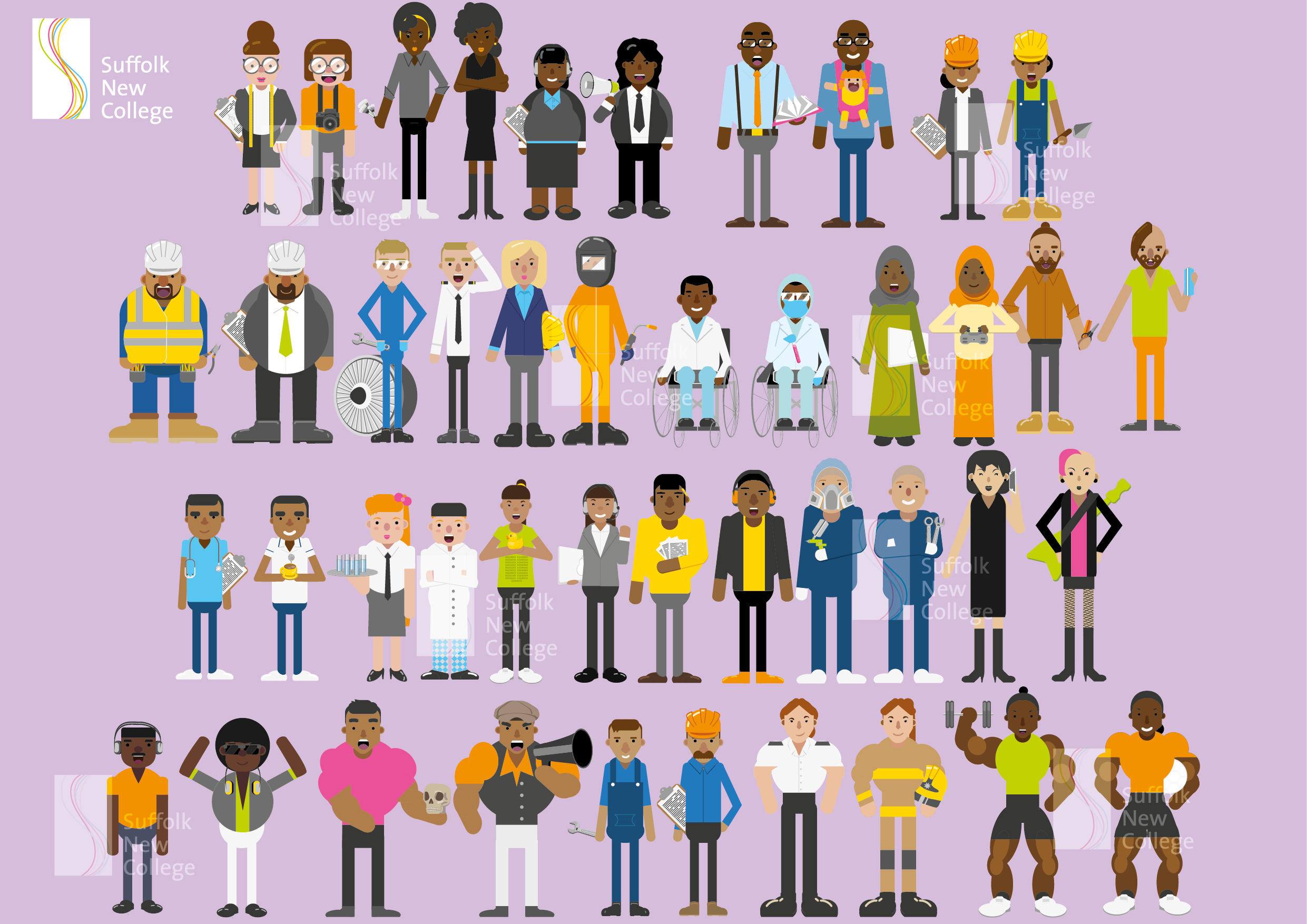 Our pathway posters need reproducing.. I think this would be a good project for you. I’m thinking a tube map style would look good? You can find the info on here https://www.suffolk.ac.uk/schools/career-paths. The originals should be on Claire’s Mac.