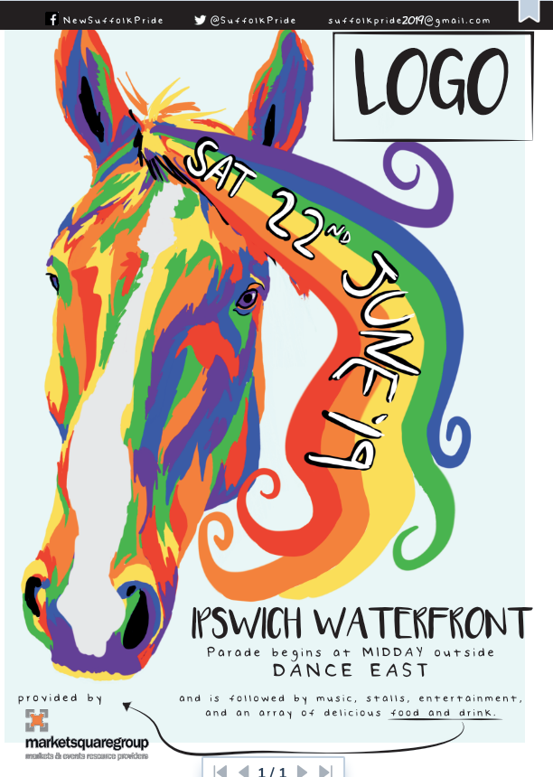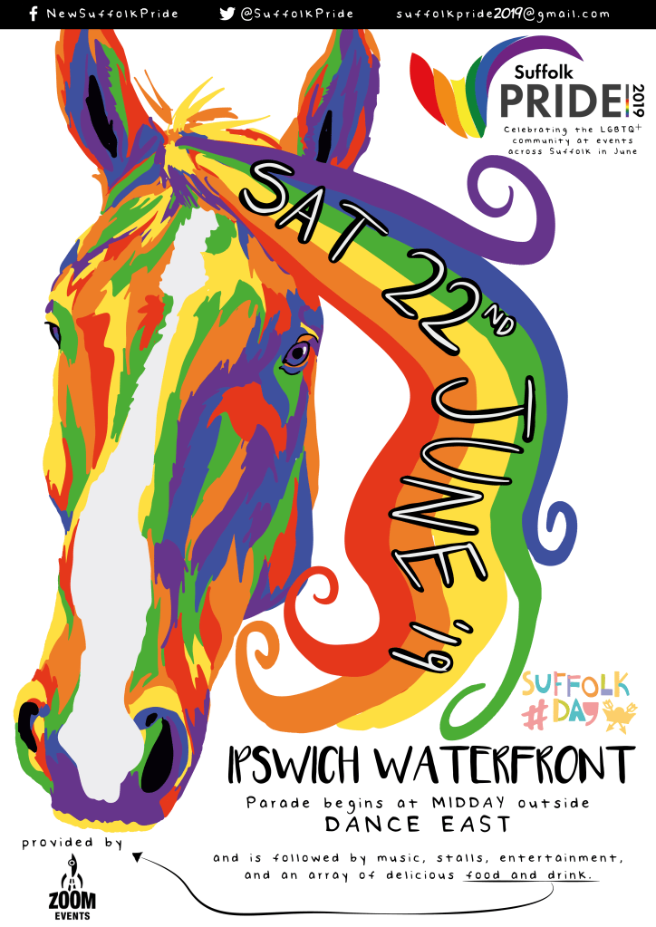 2019 saw the return of Pride celebrations to Suffolk after a long, rainbowless drought, and I was granted the absolute honour of creating graphics and marketing materials to spread the good word. As a member of the LGBTQ+ community, this project meant a lot to me, and this definitely came across in the work I created.
