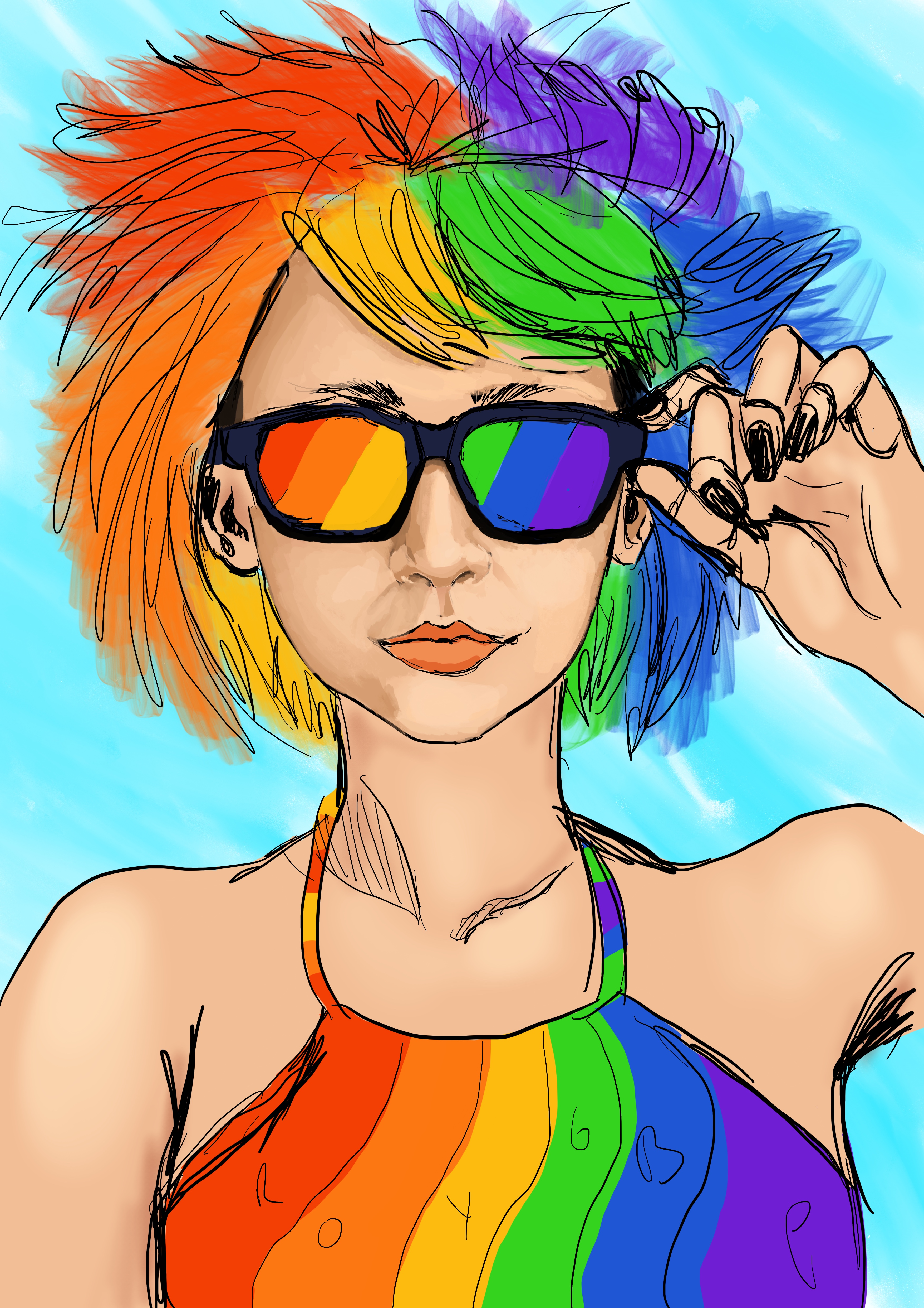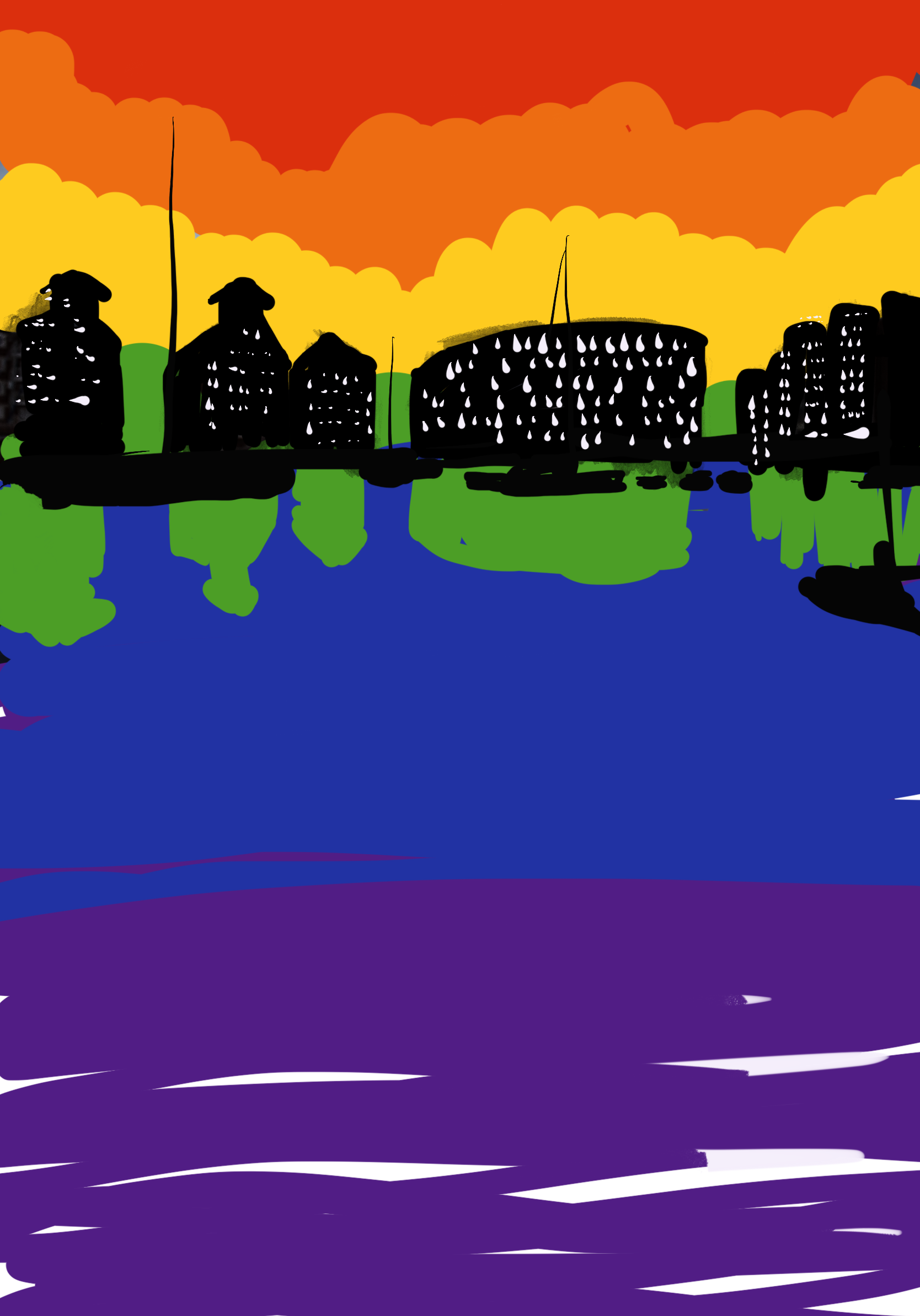 I produced three preliminary illustrations, each with a different target audience in mind: a ‘mature’ illustration of the town’s Waterfront, where the parade was to take place; a ‘fun’, vibrant, youthful illustration to draw the attention of the younger LGBTQ+ community; and a more ‘commercial’, general public design, created with merchandise in mind.