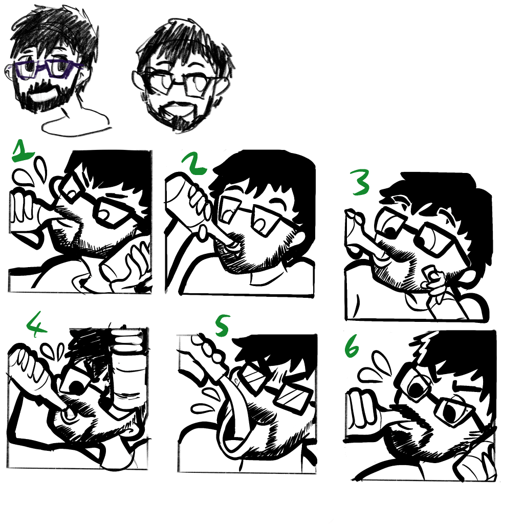 He is half-blind, and likes to have this reflected in emotes/artwork depicting his likeness. (He also happens to be my fiance, which makes creating content in collaboration with him extremely easy!). Due to issues with a previous artist, Oshie needed a complete rebrand to replace all work by said artist. As he already had an established and successful brand, it was an interesting challenge to stay true to his current brand while breathing new life into it.